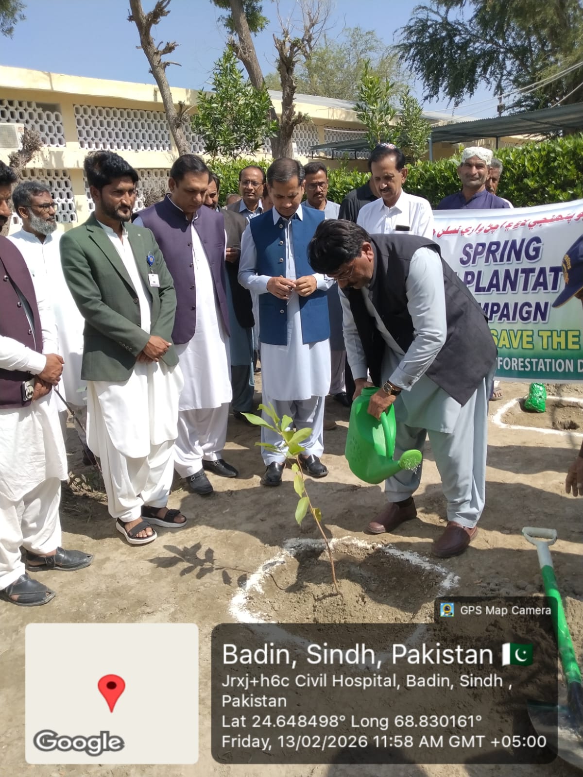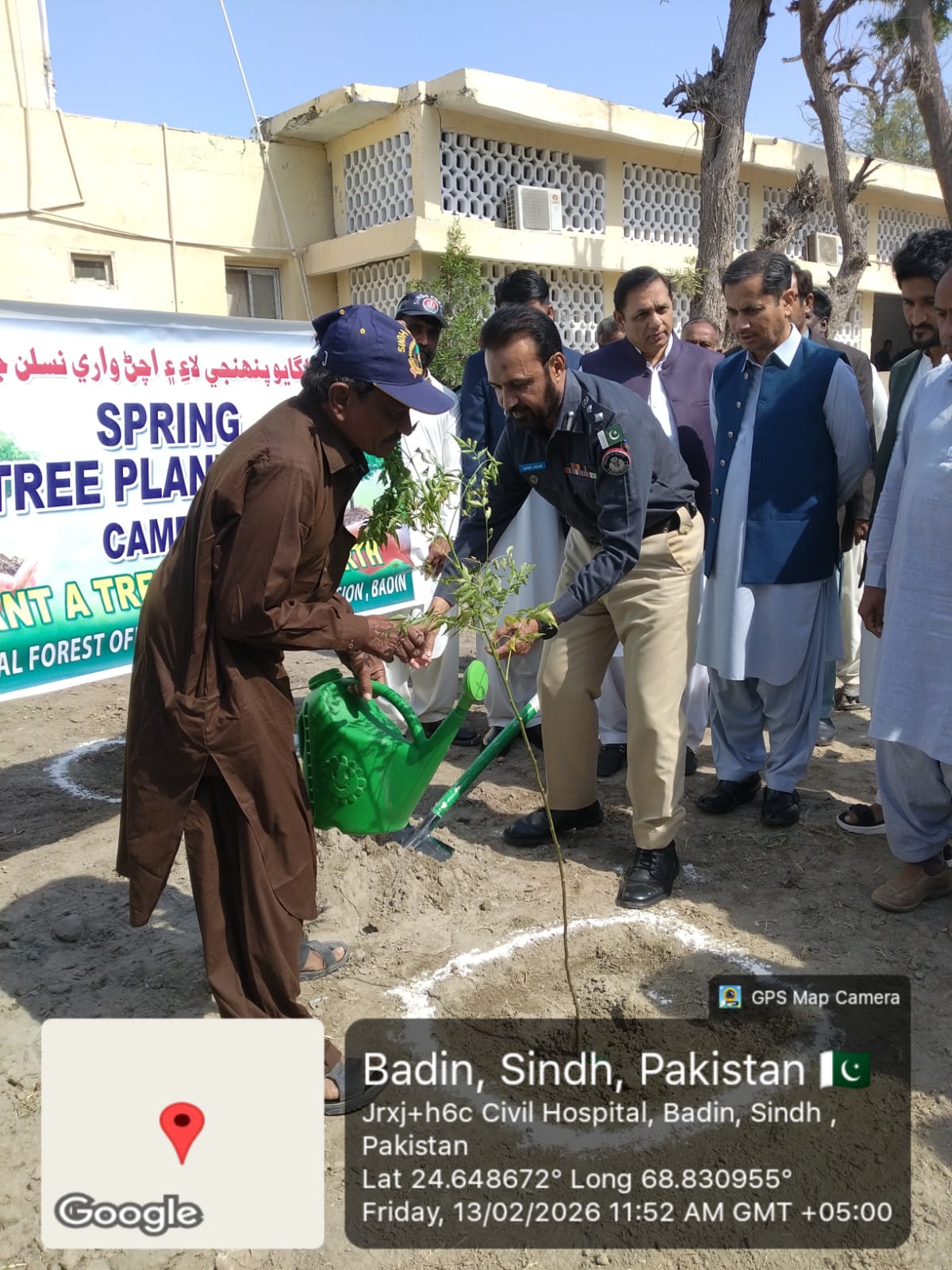 Under the ongoing Spring Tree Plantation Campaign 2026 (STPC-2026), a tree plantation drive was organized at Old Civil Hospital, Badin. The event was graced by the Deputy Commissioner Badin, SSP Badin, Divisional Forest Officer Mr. Abid Rind Sb, doctors, and heads of various district departments, who actively participated in planting saplings and reaffirmed their commitment to promoting a greener and healthier Badin.